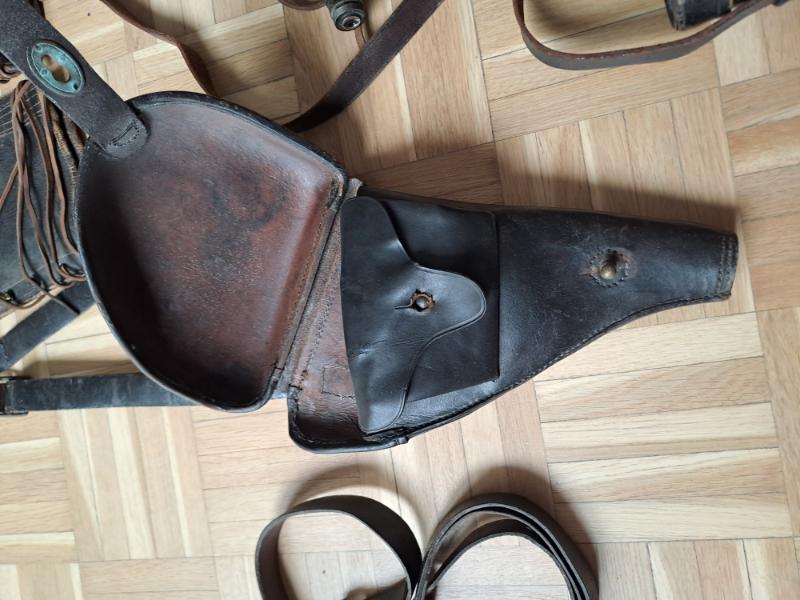 Bonjour je vous propose cet ensemble composé d'un étui de 92 + cuir baudrier( cuir fragilisé par endroit - a manipuler en fasiant attention) + rare ceinture d'étui + porte carte + guettres + jumelles militaire dans étui (Jumelles HS manque un cousinet d’oeil) . LOT INDIVISIBLE