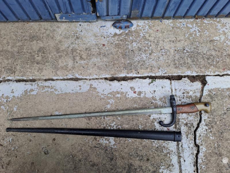 Bonjour je vous propose cette baïonnette de lebel état moyen quillon repeint trace d'oxydation mais avec fourreau