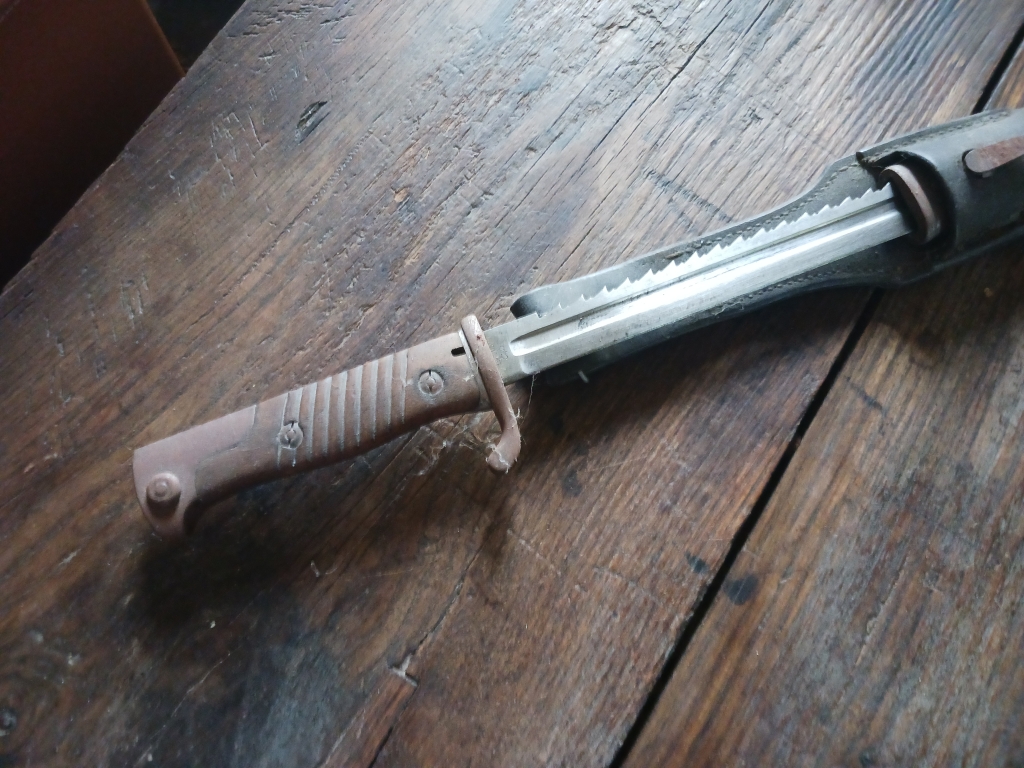 CASQUE CAMOUFLE/BAIONNETTE LONGUE SCIE sortis grenier