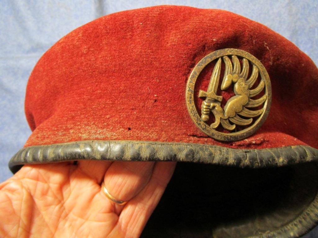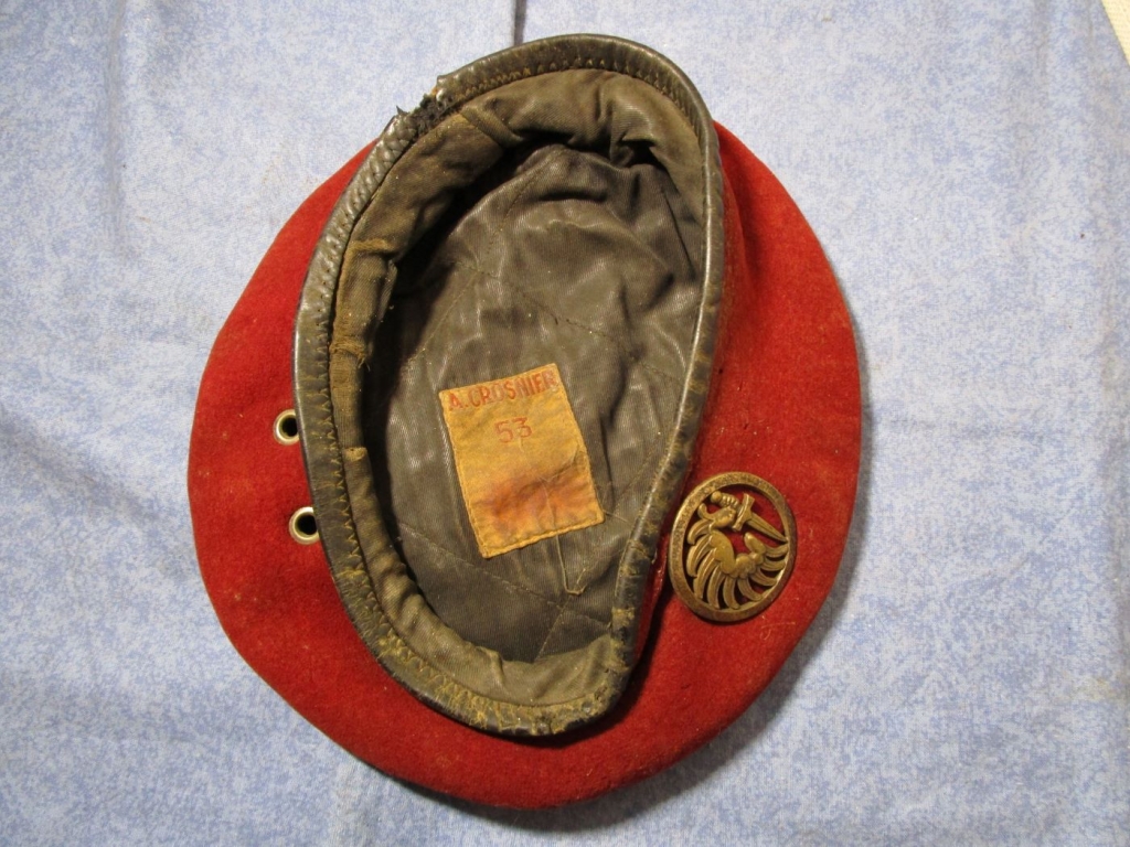 Taille 53, fabricant "A.CROSNIER". Insigne para métro, Drago rue de Romainville. Drap avec petites léchures de mites au niveau de l'insigne et 2 entailles symétriques de 1 cm à droite de l'insigne (utilisation inconnue). La toile noire intérieur est absente au niveau de l'épingle de l'insigne. Cordon absent. Autres photos sur demande. Prévoir 9.30 euros en colissimo ou 5.70 euros par mondial relay.