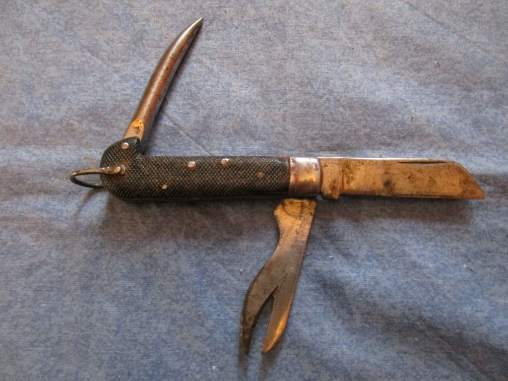 Petit modèle de fabrication civil d'époque 39/45. Pas de Broad arrow visible. Le fabricant semble être "CORIC" (sans certitude) + une étoile. 100% identique au modèle militaire. La fabrication semble être avant 45 car il n'y a pas de décapsuleur. Prévoir 9.30 euros en colissimo ou 5.70 euros par mondial relay.