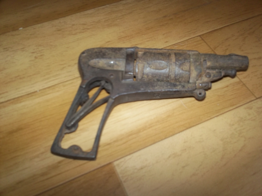 PIECE DE GRENIER PAS DE POIGNEE ,A DEROUILLER ,sinon tout fonctionne tres bien,sortie canon 4mm,logueur 12 cm autres photos sur demande