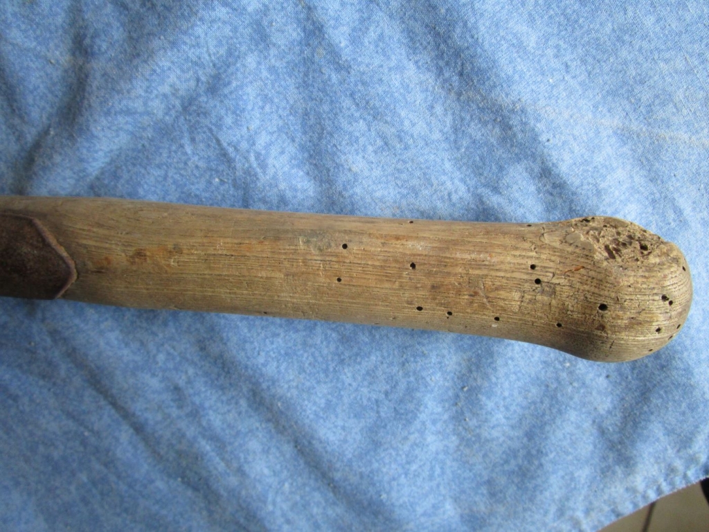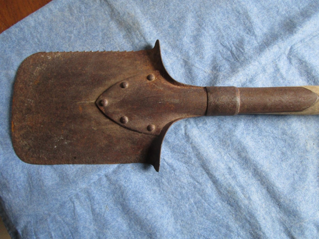 Pelle à dents de scie modèle 1879. Matriculée sur le fer. Voir état du fer sur les photos (autres photos sur demande). Manche avec quelques trous de bêtes (voir photos). Prévoir 10.70 euros en colissimo ou 7.40 euros par mondial relay.