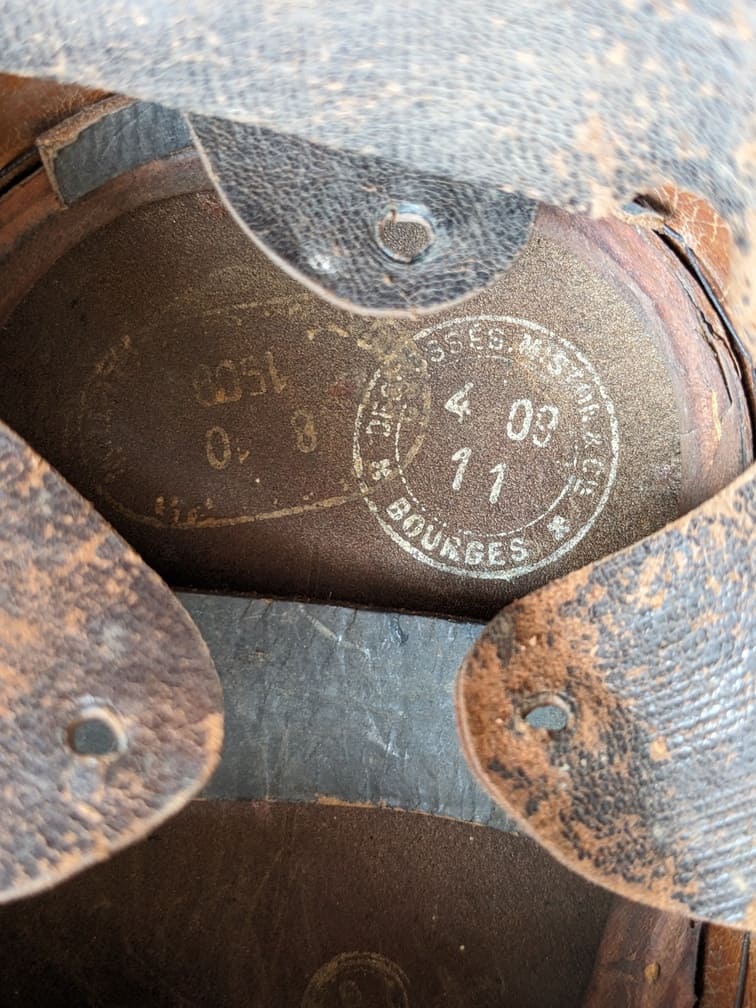 Coiffe intérieure en cuir à six dents de loup en bon état.