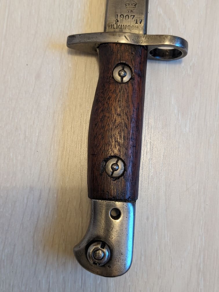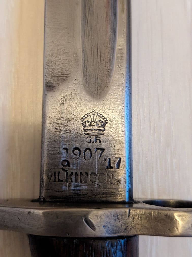 Très belle baïonnette en bon état fabriquée par Wilkinson en 1917.