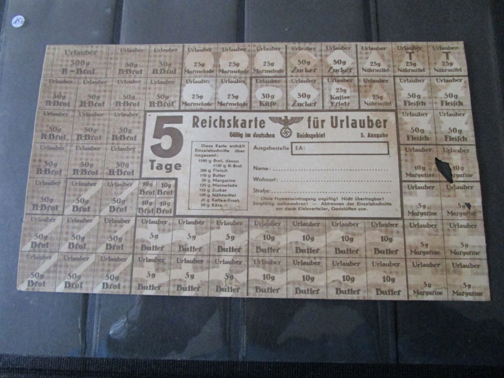 | N° 463929 | Ticket de rationnement allemand pour permissionnaire 39/45 | 15 | Euros | |